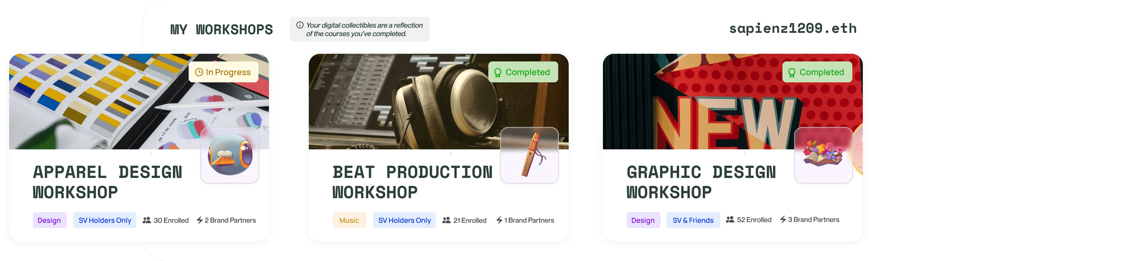 Imagine the speed and reach that Web3 communities develop, but for a decentralized learning community. Web3 fosters high-touch, high-impact interaction with content accessible from anywhere, anytime. Your tokens are your certificates of participation. Flex what you learn and equip your SAPIENZ with lessons from the best in the game.